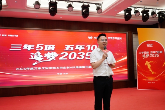 旺德府家居集團新零售定制業(yè)務(wù)中心聯(lián)席總經(jīng)理金超群先生代表萬象天冠品牌,向現(xiàn)場每一位嘉賓表達誠摯感謝。并向全體合作伙伴傳遞熱忱期許:“期待在萬象天冠高端衣柜定制的發(fā)展征途上,憑開拓創(chuàng)新的銳氣破局向前,同心共繪行業(yè)繁榮新圖景!”