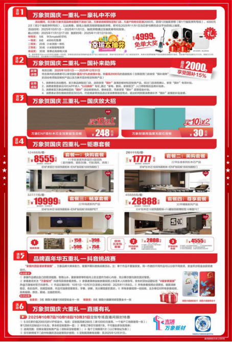 不同于傳統(tǒng)促銷“單純降價(jià)”的噱頭,此次萬象品牌結(jié)合雙節(jié)深度融合政府補(bǔ)貼紅利與企業(yè)品質(zhì)實(shí)力,疊加“贏華為 Mate80”等重磅驚喜,通過線上多平臺與線下全渠道聯(lián)動,構(gòu)建“品質(zhì)保障+政策實(shí)惠+驚喜體驗(yàn)” 三位一體的消費(fèi)閉環(huán)——既讓消費(fèi)者享受國補(bǔ)與企業(yè)讓利的雙重實(shí)惠,又以極致環(huán)保品質(zhì)筑牢健康家居根基,更能通過抽獎(jiǎng)解鎖華為mate80、4999元免單、小米智能家電等福利,真正實(shí)現(xiàn)“品質(zhì)夠超值,福利全滿載”。