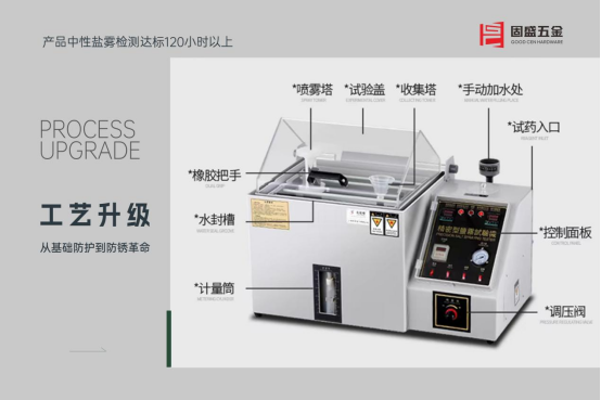 固盛五金對(duì)品質(zhì)的執(zhí)著,首先體現(xiàn)在電鍍工藝的階梯式突破中。以核心產(chǎn)品二段力鉸鏈為例,從最初的本色鍍鎳,到進(jìn)階的槍灰色處理,再到如今的鈦金電鍍,每一次升級(jí)都指向更嚴(yán)苛的防銹標(biāo)準(zhǔn)。通過(guò)三層電鍍防護(hù)技術(shù),其產(chǎn)品中性鹽霧檢測(cè)達(dá)標(biāo)120小時(shí)以上,酸性鹽霧測(cè)試突破24小時(shí),真正實(shí)現(xiàn)“防銹堪比不銹鋼”的效果,甚至達(dá)到“鐵可泡水級(jí)別”的全新水準(zhǔn)。這種對(duì)工藝細(xì)節(jié)的打磨,讓看似普通的鉸鏈擺脫了“易生銹、壽命短”的刻板印象,成為耐用性的代名詞。
