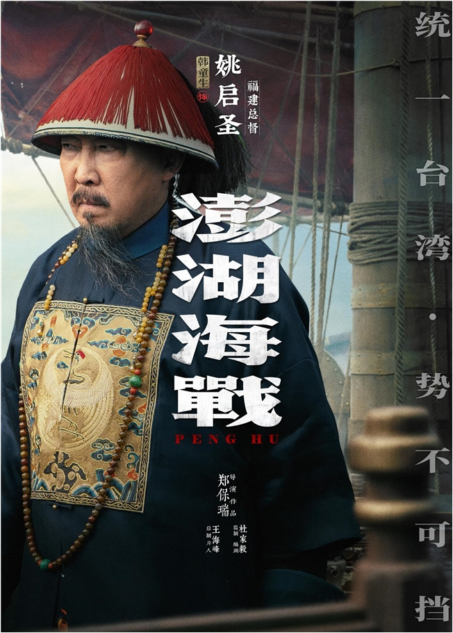 海報(bào)中,王學(xué)圻老師扮演的福建水師提督施瑯“懷私不計(jì),止戈兩岸”的“皓首老將”形象躍然而出;青年演員易烊千璽飾演27至29歲的康熙皇帝,眉宇間凝聚著“英年雄主,運(yùn)籌千里,一統(tǒng)山河”的決心;青年演員侯雯元扮演的福建水師外委把總施世驊,戰(zhàn)場(chǎng)上與父親和水兵兄弟“肝膽相照”,但經(jīng)歷澎湖“戰(zhàn)火洗恨”后卻“釋刃歸帆”;青年演員羅一舟扮演的是投軍福建水師擔(dān)當(dāng)碇手的“莆田漁戶”許天曹,心中最大愿念是與家人“同舟起航,祈求團(tuán)圓”;韓童生老師扮演的是重要的“平臺(tái)輔臣”福建總督姚啟圣,澎湖海戰(zhàn)后“夢(mèng)圓海靖邊寧”;演員胡明飾演了福建水師左營游擊劉克宏,此人在電影中則是“暗懷異志,結(jié)黨怠戰(zhàn),惑亂軍心”的人物;馬京京塑造的是福建水師總兵朱天貴,此人在歷史上是著名的“海戰(zhàn)驍將”,澎湖海戰(zhàn)中最終“懷忠抱憾,血染沙場(chǎng)”;演員答有為扮演的福建水師后營游擊曾成,在澎湖海戰(zhàn)中“赤膽忠心,臨危不懼,英魂鎮(zhèn)?!薄?/p>